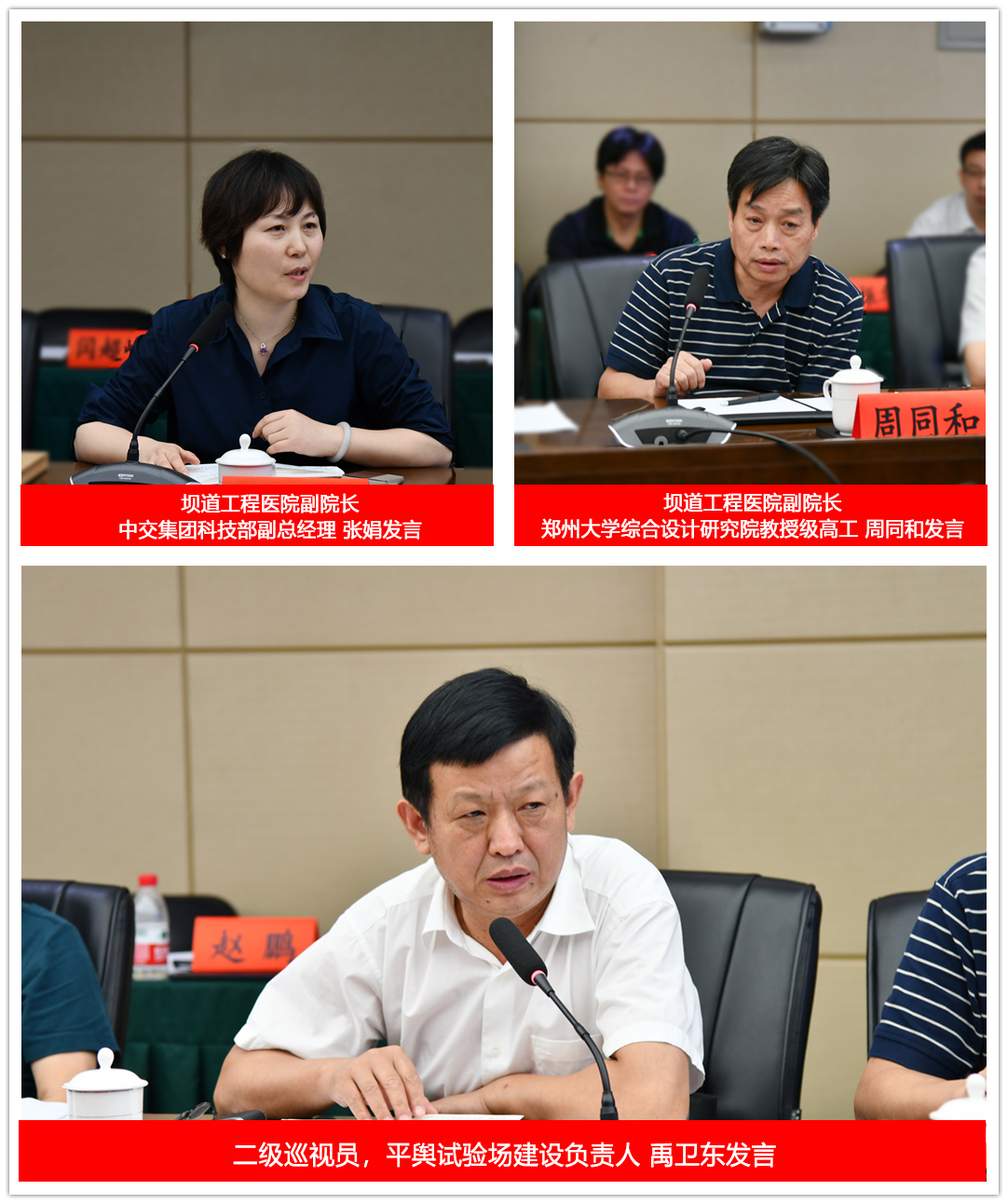 隨后,壩道工程醫院副院長張娟、周同和,平輿試驗場建設負責人禹衛東分別代表壩道工程醫院和平輿試驗場發言,認為建設工程醫院充滿責任感和使命感,要牢牢把握科技創新和協同創新,推動并促進工程醫院的發展。