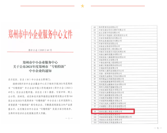 鄭州市“專精特新”中小企業聚焦核心主業,創新能力、創新活力和抗風險能力較強,具有專業化、精細化、特色化、新穎化等特點,已成為落實創新驅動發展戰略的關鍵載體,成為提高產業鏈供應鏈穩定性和競爭力的堅實保障。安源公司8月申請上報,11月通過名單公示,被評選為2021年度鄭州市“專精特新”中小企業。安源公司將不斷提高創新能力和產品質量水平,在引領全市中小企業“專精特新”發展方面當好表率,為鄭州市經濟社會發展做出更大成績。